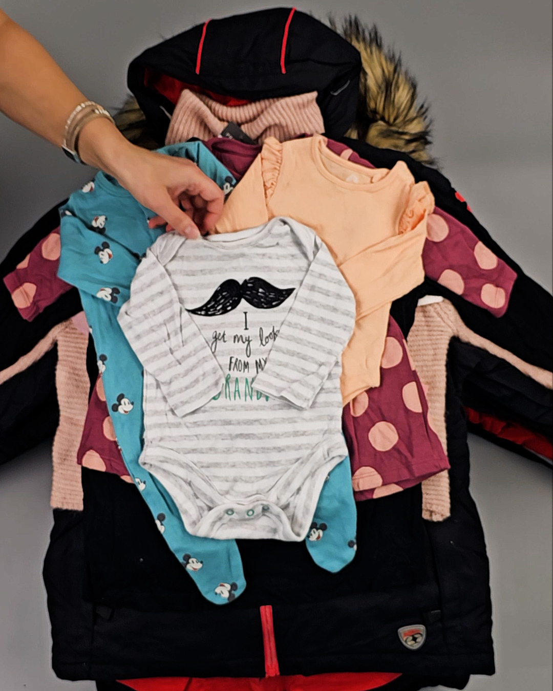 В мешке представлен детский ассортимент - это продукция актуальных европейских брендов высокого качества. Отлично подойдет для закупки если целевым сезоном продаж является зима.